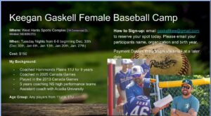 Baseball Camp Opportunity for Female Baseball, 11U and 13U CO-ED December 8, 2025 Please note the following baseball camp opportunitites for female baseball as well as 11U and 13U co-ed. Posted in LWF Baseball News, News